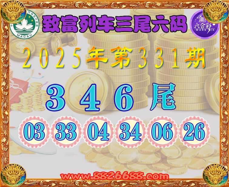 331期:〖致富列车〗 🎖️三尾六码🎖️【346尾】开:26准上榜高手