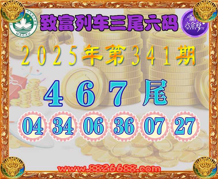 341期:〖致富列车〗 🎖️三尾六码🎖️【467尾】开:06准上榜高手